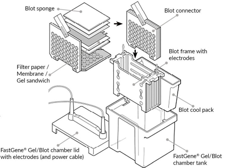 The FastGene® Western Blot System is an efficient device to perform the first Western Blot protein transfer step from gel to membrane via a wet electropohoretic transfer technique. The Western Blot Systems contains all the necessary components for reliable protein transfer and comes with detailed guidelines to successfully perform transfer and Western Blot analysis. The system includes a cool pack, which is installed during the run. The cool pack absobs generated running heat, avoiding the possibility of power loss. Gel and membrane can be easily sandwiched in the blot connector, which is assembled via an easy-to-use lock mechanism.